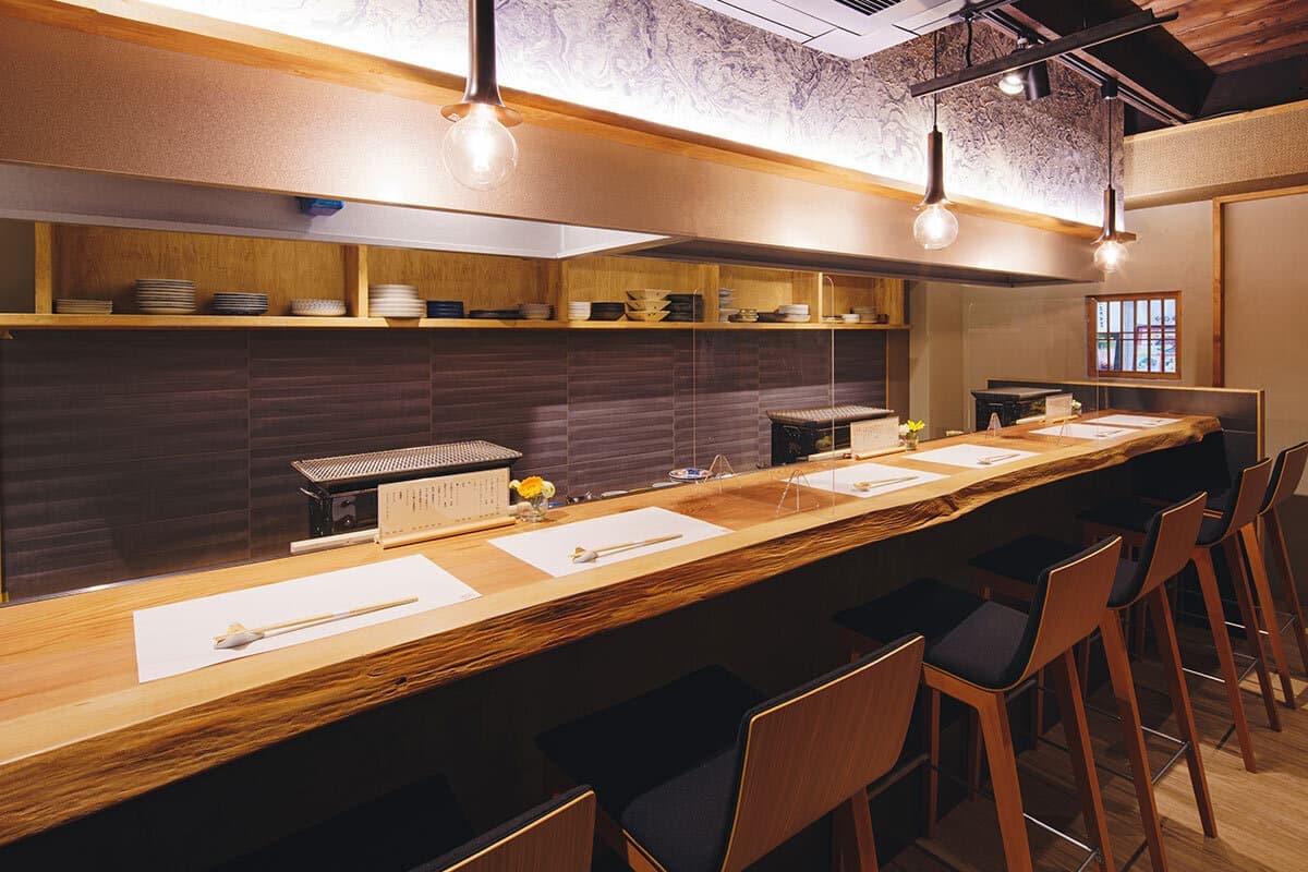 料理が焼きあがる様を目の前で眺められるカウンター席。ジュージューと焼きあがる様子や、炭火のパチパチとはじける音、香ばしさと旨みの混ざり合う香りは、食べる前から食欲を掻き立てます。